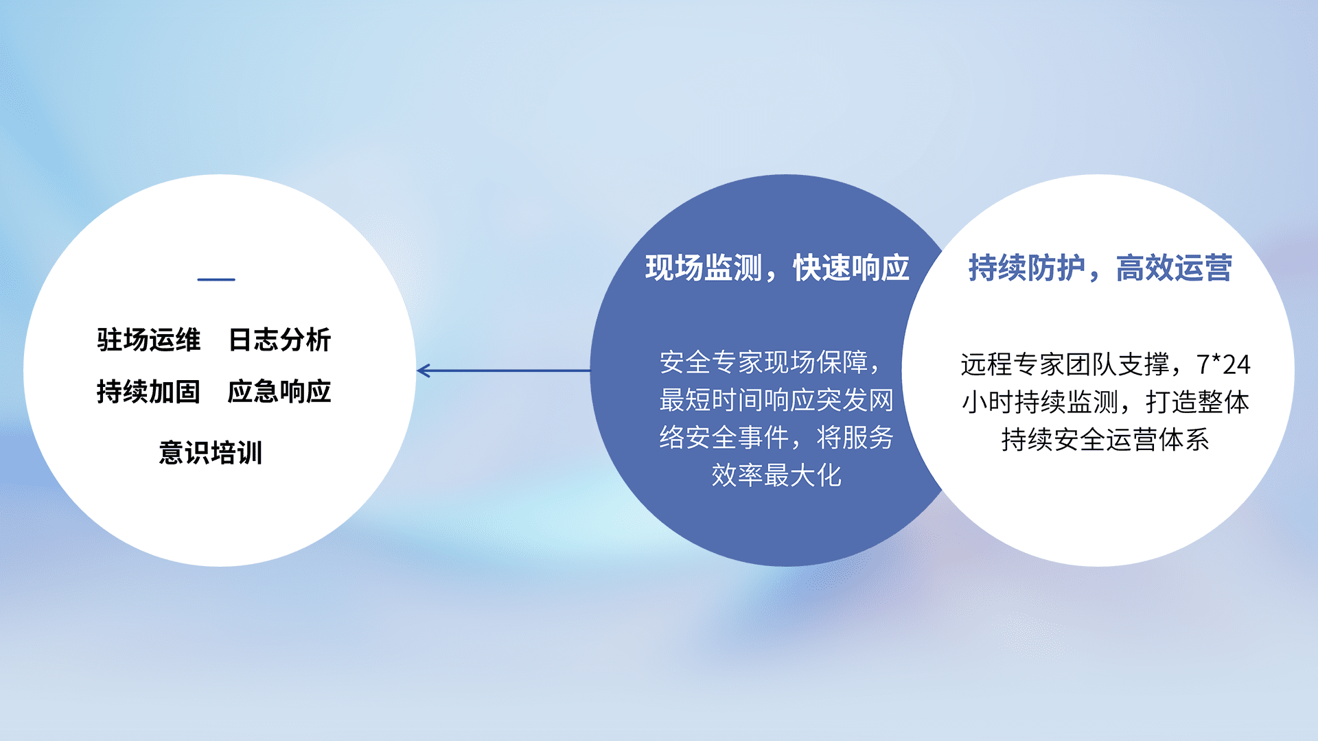 7X24小时持续监测安全事件,保持安全策略有效性,降低资产脆弱性风险,,精准拦截黑客攻击,,减少被黑客利用的机会,,第一时间遏制,,,,降低损失。。。。